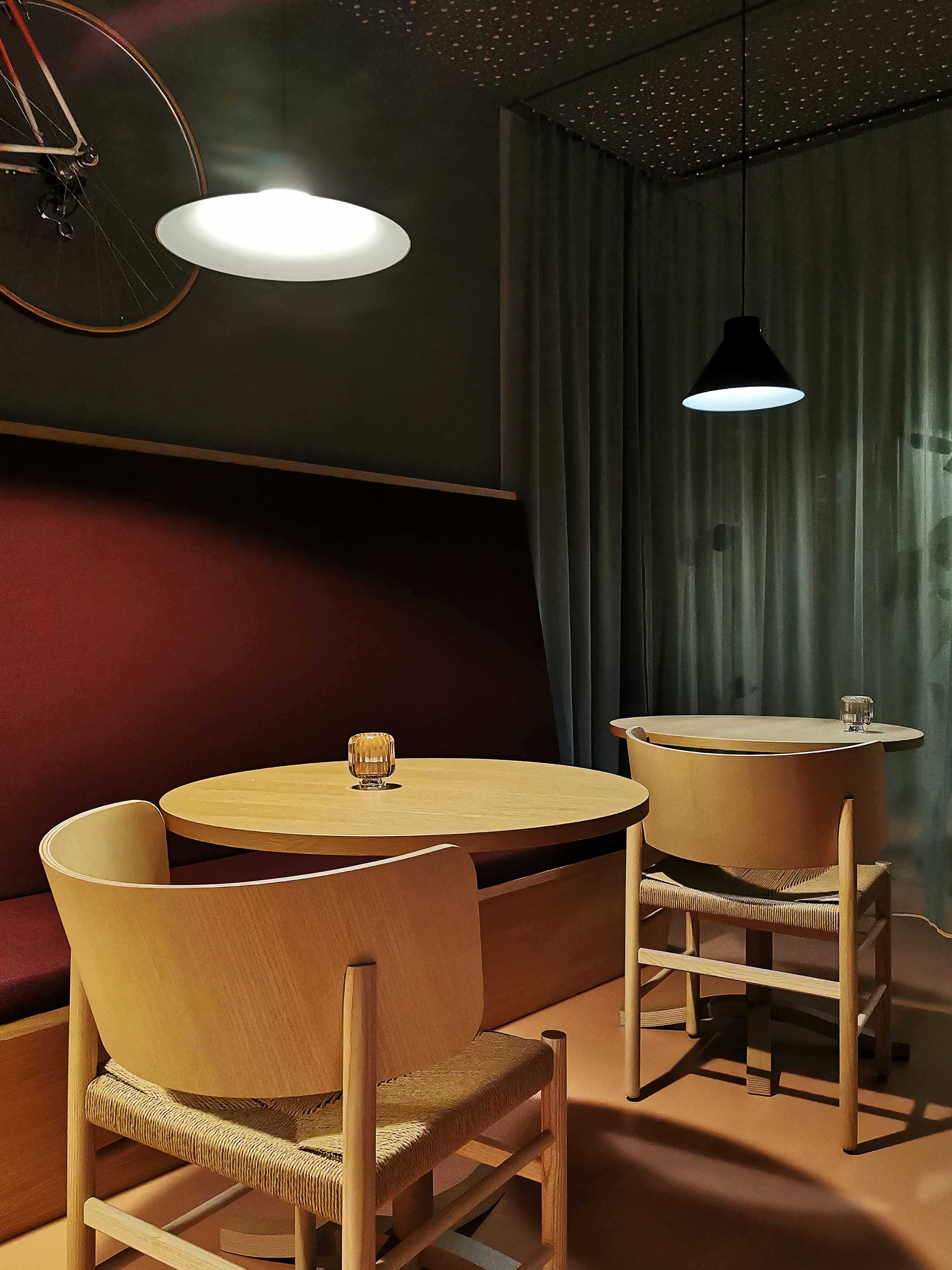 Für das Restaurant, Natur- und Bikehotel Hedwig in Balgach wurde ein einfaches Konzept entwickelt, welches den bestehenden Innenraum dezent ergänzt und nutzungsangepasste Atmosphären schafft. Flexibel kann zwischen gemütlichen Rückzugsorten und offenen Grossräumen gewechselt werden. Die leichte Transparenz der gliedernden Stoffe verändert die Wahrnehmung des Raumes im Zusammenspiel mit dem natürlichen und künstlichen Licht. Multifunktionale Möbelstücke können bei Bedarf als Akzente ergänzt werden.